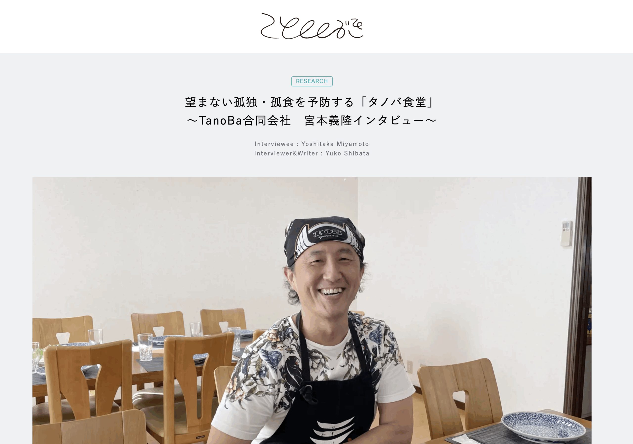 記事では、代表宮本義隆へのインタビューを通じて、タノバ食堂の「自由価格制コミュニティ食堂」という仕組み、孤独予防というテーマ、