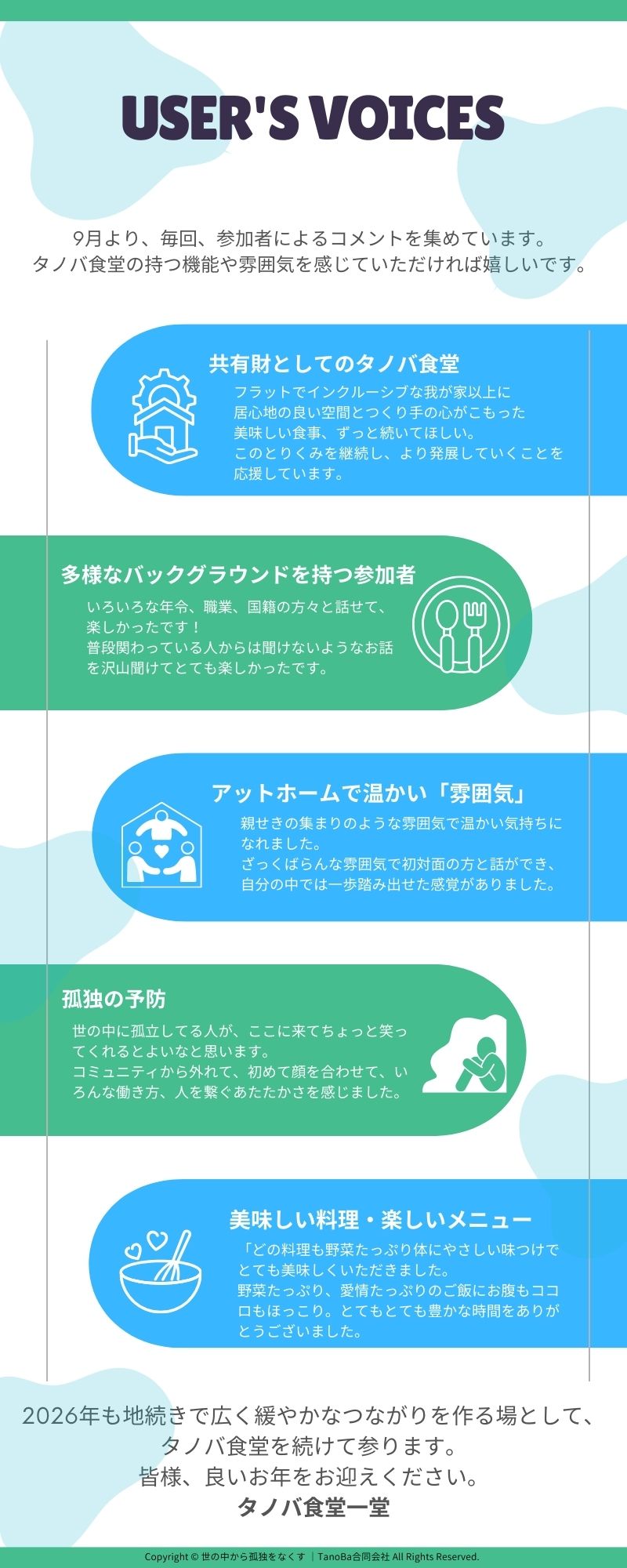 2025年も残りわずか。1年間、無事タノバ食堂を開催することができましたこと、改めて御礼いたします。