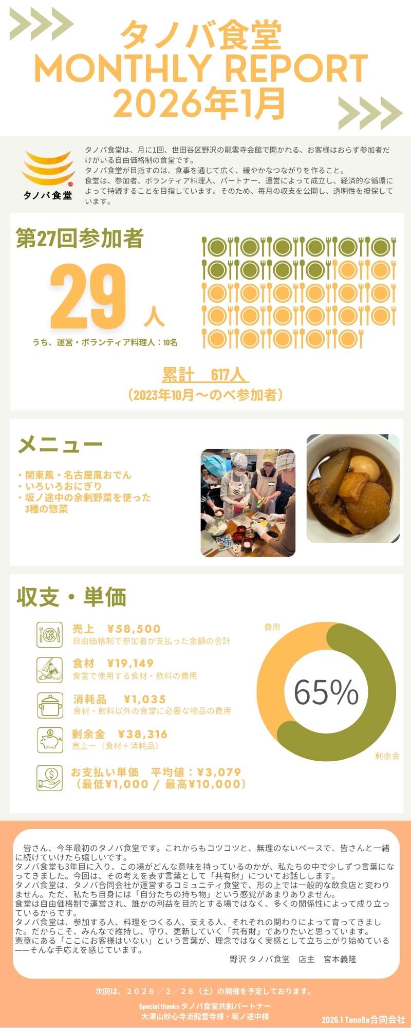 タノバ食堂開催報告&Monthly Report 2026/1